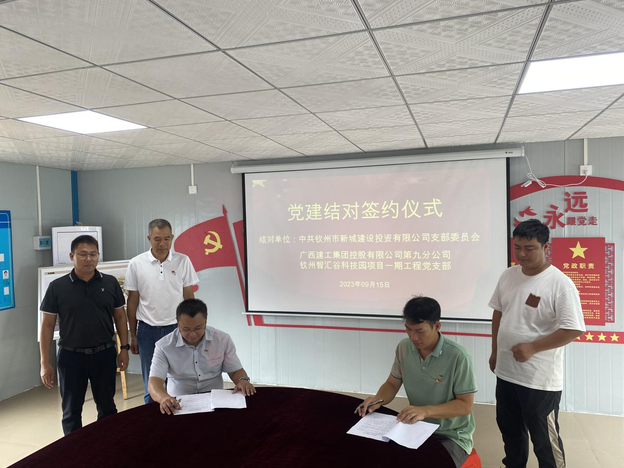 為充分發(fā)揮黨建引領作用,護航項目建設質(zhì)量、安全生產(chǎn),促進市重點項目建設提速增效,2023年9月15日,建投公司黨支部與廣西建工集團欽州智匯谷科技園項目一期工程黨支部舉行黨建結(jié)對共建協(xié)議簽約儀式。集團公司副總經(jīng)理、建投公司黨支部書記劉雙,欽州智匯谷科技園項目一期工程項目經(jīng)理劉鐘明等出席簽約儀式并簽約。