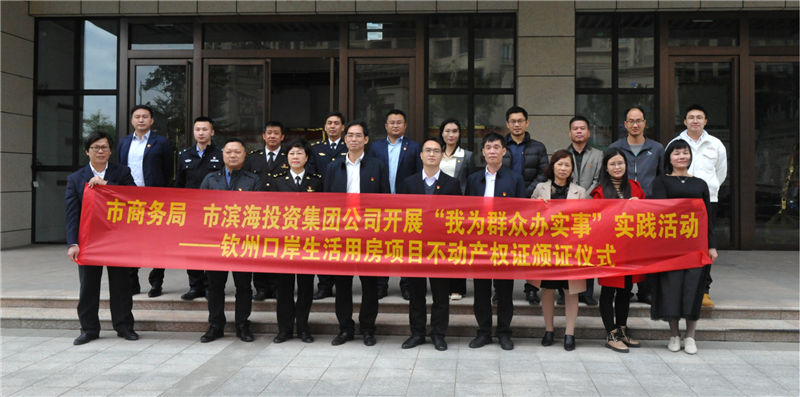 2021年11月23日上午,市商務(wù)局、市濱海投資集團(tuán)公司在市濱海投資集團(tuán)公司12樓黨員活動(dòng)室聯(lián)合開(kāi)展“我為群眾辦實(shí)事”主題實(shí)踐活動(dòng),舉行欽州口岸生活用房項(xiàng)目不動(dòng)產(chǎn)權(quán)證頒證儀式。市濱海投資集團(tuán)公司黨委副書(shū)記卜玉聲同志主持會(huì)議,市商務(wù)局黨組書(shū)記、一級(jí)調(diào)研員王紹平同志出席會(huì)議并講話。