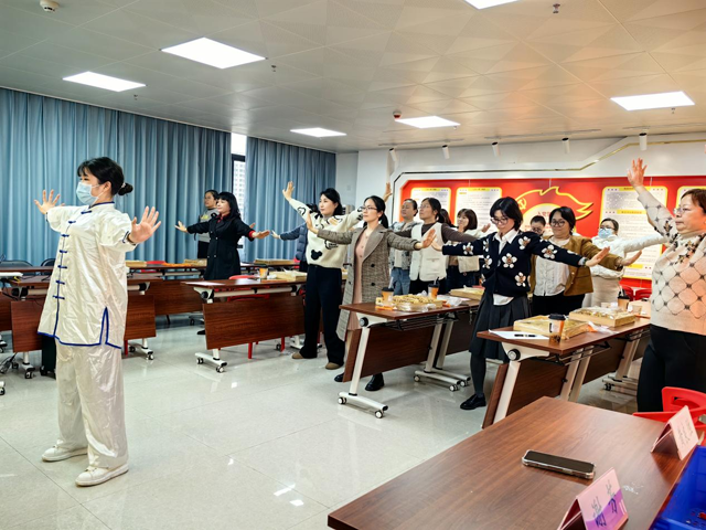 授課過程中,講師還為女職工設(shè)置了中醫(yī)文化體驗環(huán)節(jié)。專業(yè)的中醫(yī)養(yǎng)生教練身著傳統(tǒng)服飾,身姿矯健地站在前方,為女職工們示范八段錦的標(biāo)準(zhǔn)動作。“雙手托天理三焦,左右開弓似射雕……” 教練一邊口中念念有詞,一邊緩緩展示著一招一式,動作行云流水、剛?cè)嵯酀?。練?xí)過程中,女職工們屏氣斂息,專注于每一個動作的細(xì)節(jié),感受著身體的拉伸與舒展,仿佛在一招一式間與古老的中醫(yī)養(yǎng)生智慧對話。八段錦不僅讓女職工們體驗到傳統(tǒng)健身方式的魅力,更在動靜結(jié)合中舒緩了身心壓力,調(diào)節(jié)了氣息。許多女職工表示,練習(xí)完八段錦后,身體微微發(fā)熱,整個人都神清氣爽,仿佛充滿了能量。