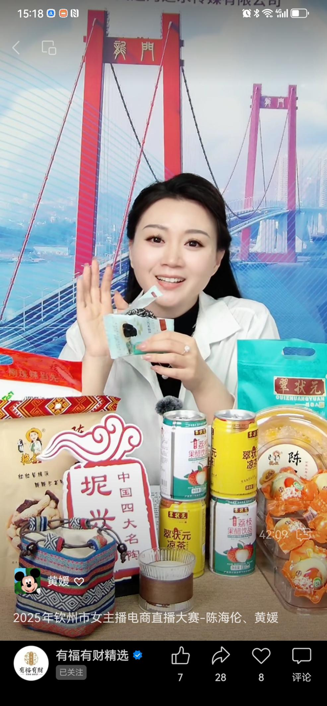 比賽采使用欽州市融媒體中心官方賬號“有福有財精選”在規(guī)定的1.5小時內(nèi)進行直播帶貨。期間,參賽者需自行策劃直播流程、設(shè)計話術(shù)、與觀眾互動等。比賽主要考察參賽者的主題把握、內(nèi)容創(chuàng)新、直播節(jié)奏掌控及帶貨能力等。在此次比賽中,陳海倫與黃媛充分展現(xiàn)出精湛實力,憑借精彩發(fā)揮與卓越表現(xiàn)一路過關(guān)斬將。在她們比賽直播期間,集團公司全體員工懷著高漲的熱情,紛紛涌入直播間,大家積極發(fā)送彈幕為她們加油鼓勁,點贊助力,滿屏的支持與鼓勵營造出熱烈氛圍。最終,在全體員工的殷切期盼與加油聲中,陳海倫與黃媛不負(fù)眾望,成功斬獲個人賽二等獎的優(yōu)異成績 。