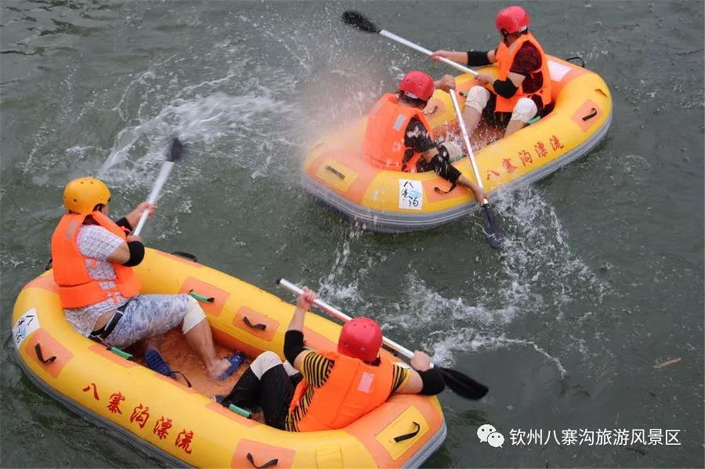 游人乘坐雙人橡皮艇,從清涼的水花中一躍而過,時而輕盈如燕,時而奔騰如虎,一路漂蕩、一路歡叫。