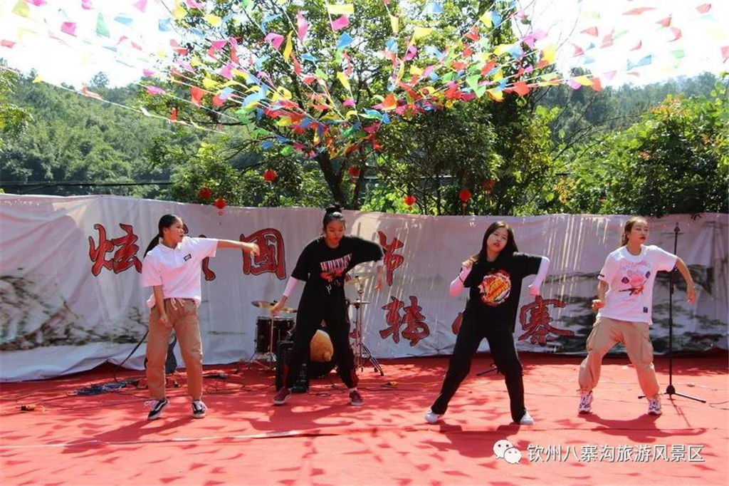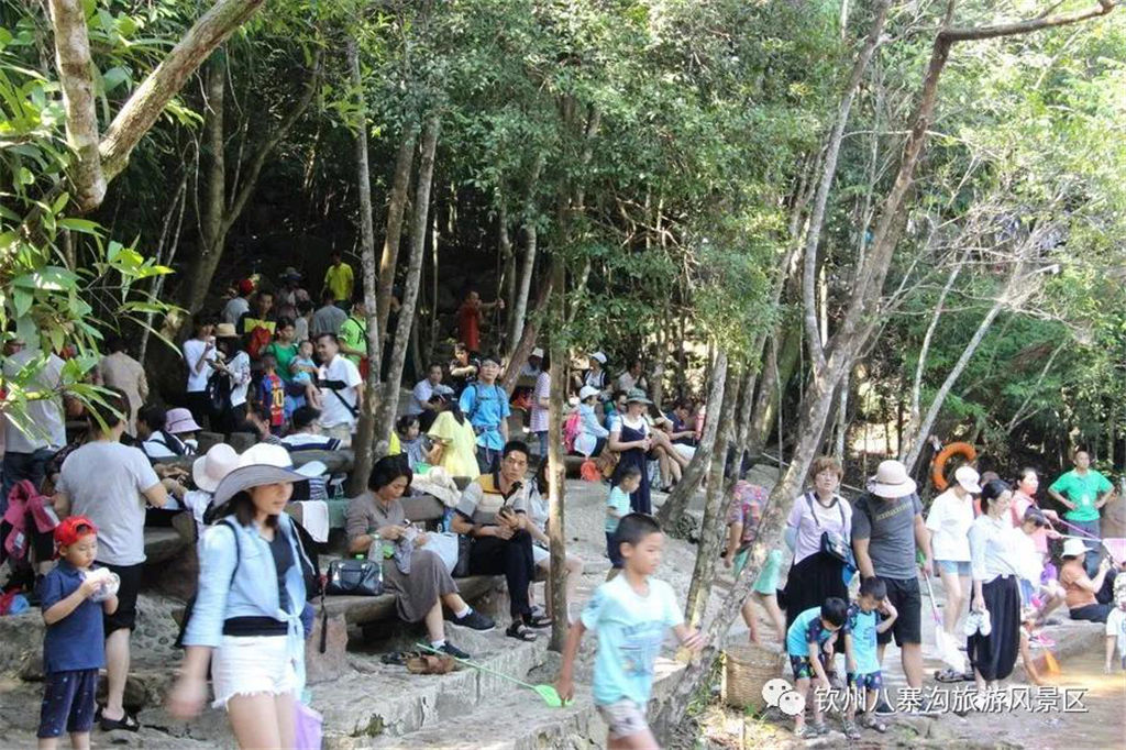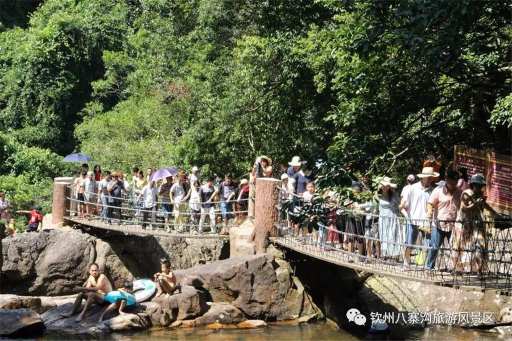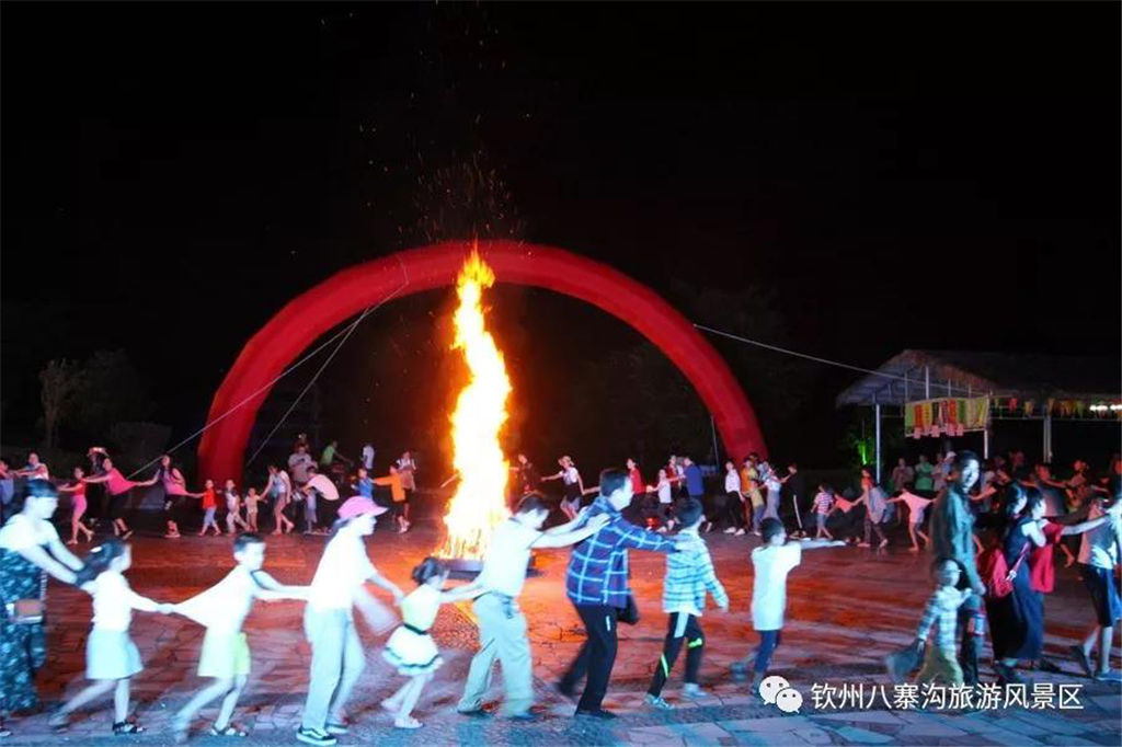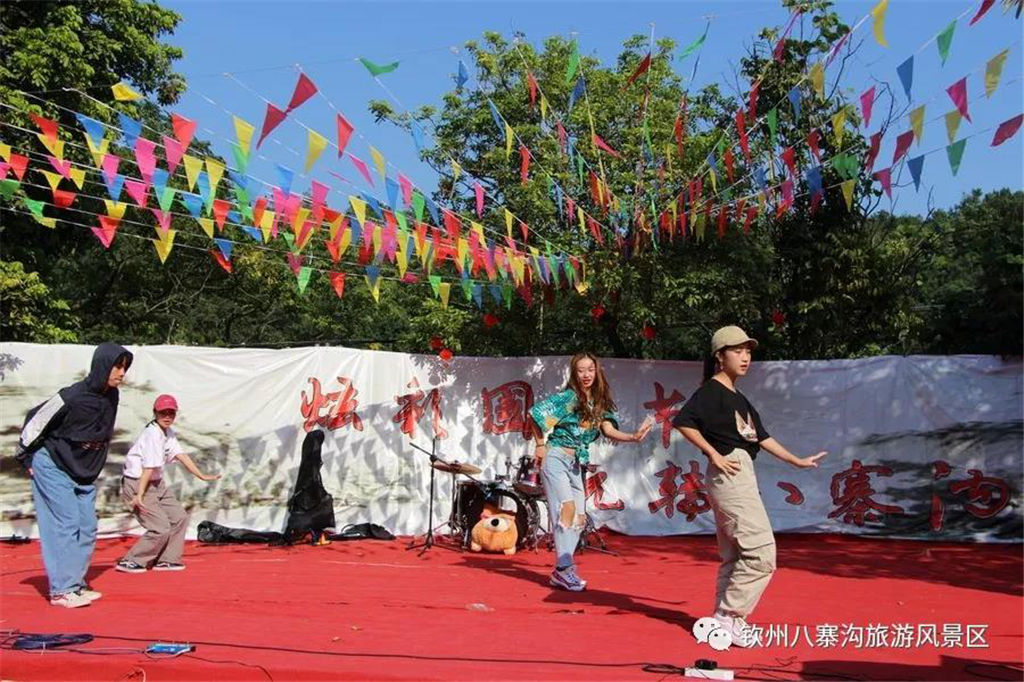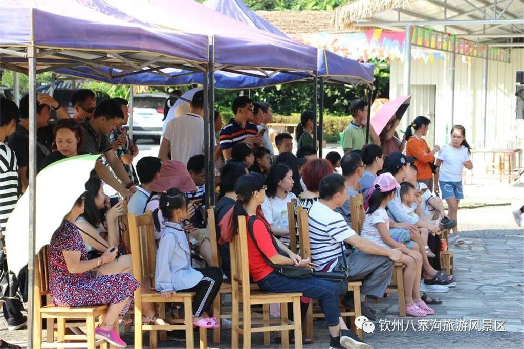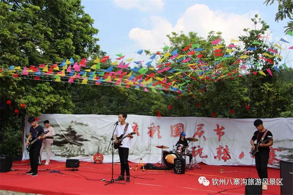 國慶期間景區(qū)舉辦以“炫彩國慶節(jié),玩轉(zhuǎn)八寨溝”為主題的系列活動(dòng)受到眾多游客親睞。游客們白天可以觀看精彩歌舞文藝演出,玩真人CS運(yùn)動(dòng),品嘗各種各樣的特產(chǎn)美食,學(xué)制作欽州坭興陶,體驗(yàn)欽州第一漂—八寨溝森林漂流,登山徒步暢游山水,呼吸新鮮空氣,天然水潭戲水其樂無窮,整個(gè)景區(qū)一片游客如織、喜樂融融的景象。