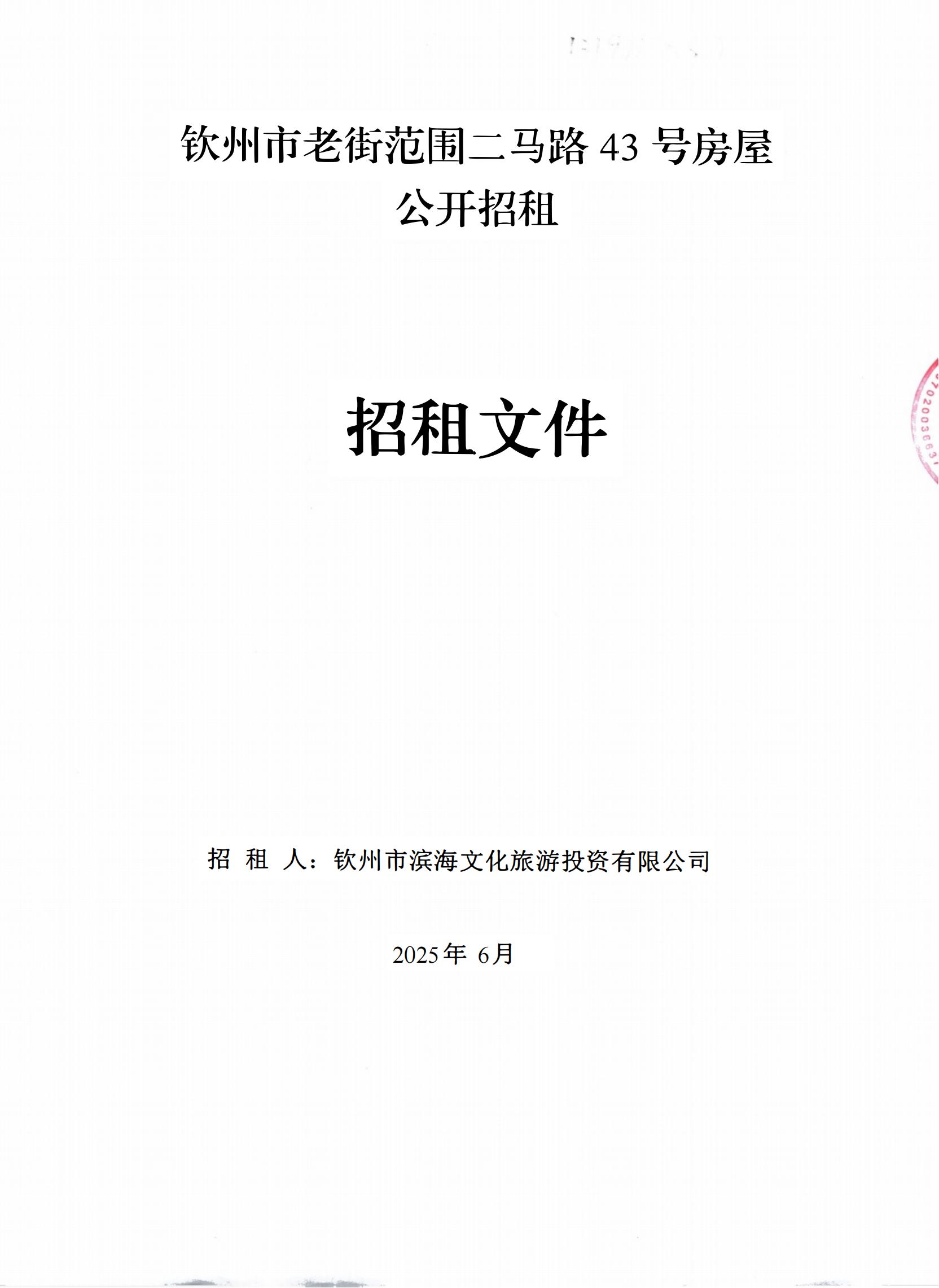 欽州市濱海文化旅游投資有限公司關于欽州市老街范圍二馬路43號房屋公開招...