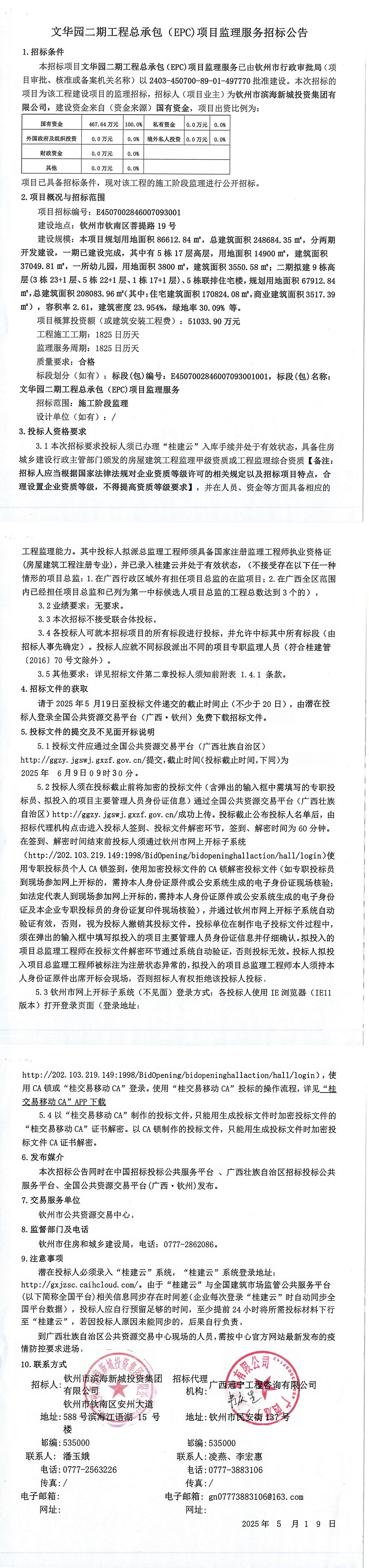 文華園二期工程總承包(EPC)項目監(jiān)理服務招標公告