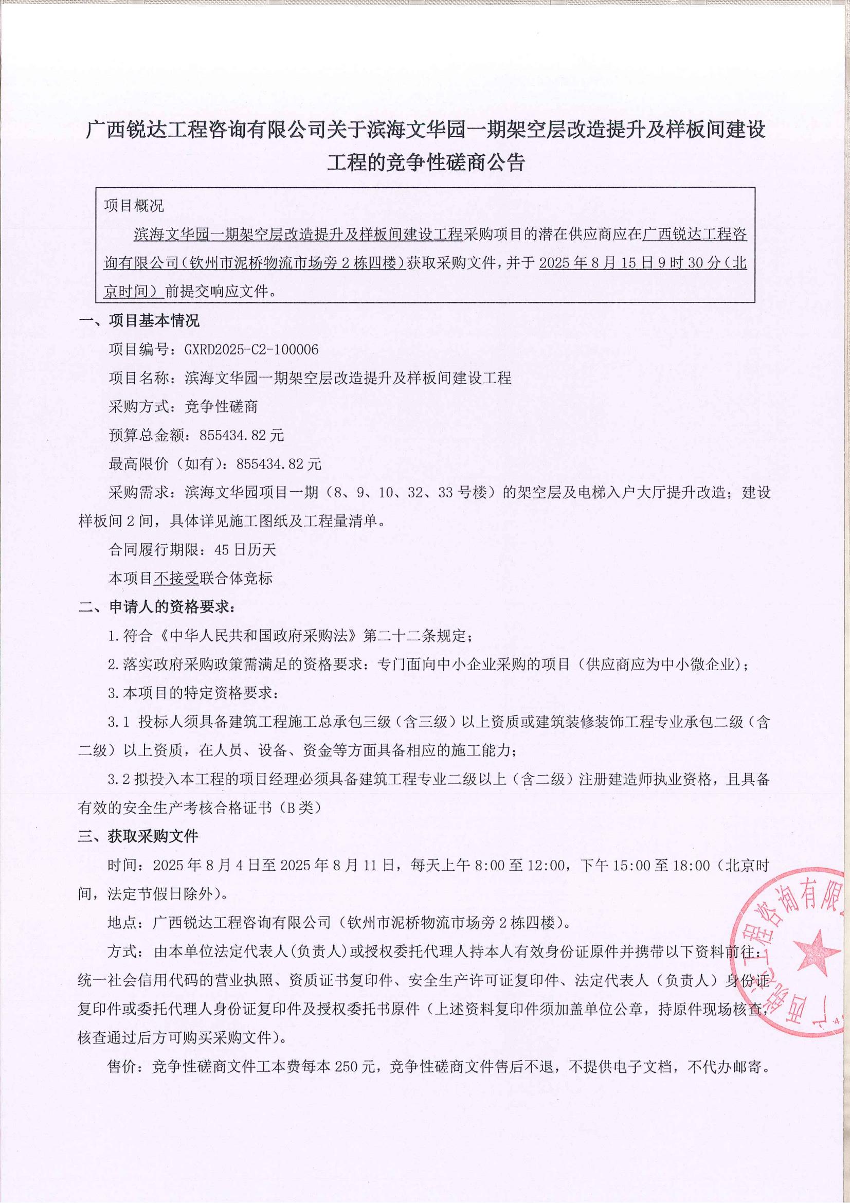 廣西銳達(dá)工程咨詢有限公司關(guān)于濱海文華園一期架空層改造提升及樣板間建設(shè)工...