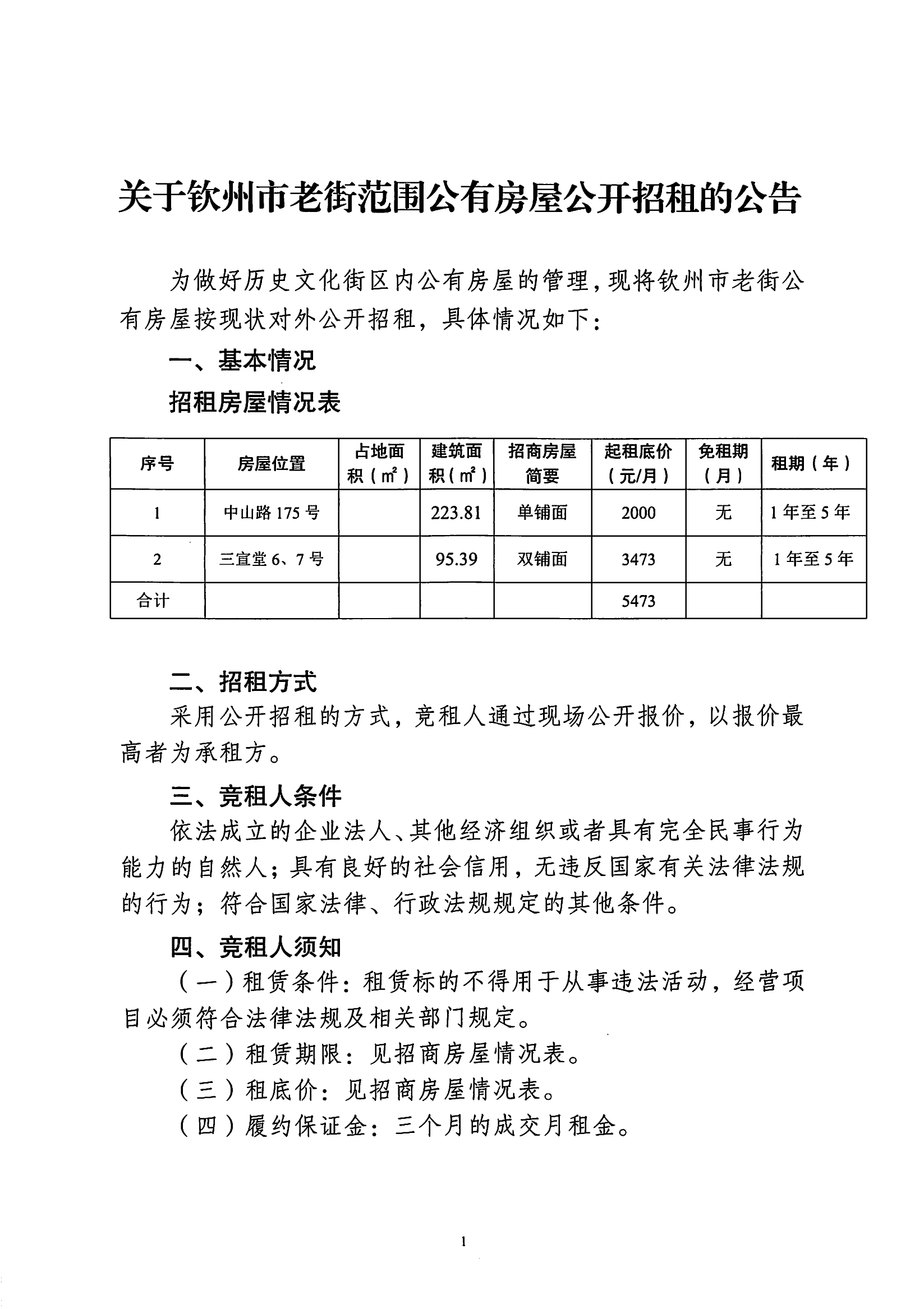 關(guān)于欽州市老街范圍公有房屋公開招租的公告