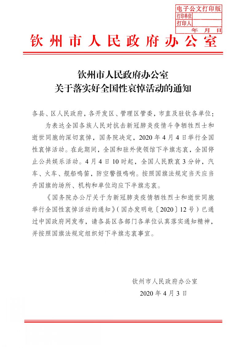 關(guān)于落實好全國性哀悼活動的通知