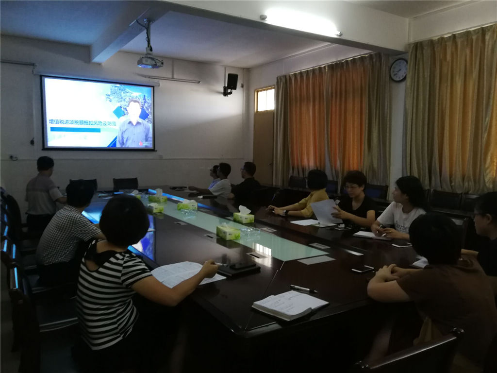 為適應(yīng)稅收政策變化,近期由計(jì)劃財(cái)務(wù)部洪家泰副經(jīng)理組織部門(mén)全體人員在集團(tuán)公司二樓會(huì)議室學(xué)習(xí)最新稅收政策知識(shí)教學(xué)視頻。教學(xué)視頻就稅率降低對(duì)納稅人的影響,對(duì)增值稅一般納稅人如何抵扣進(jìn)項(xiàng)稅額、如何開(kāi)具紅字發(fā)票、未開(kāi)發(fā)票收入補(bǔ)開(kāi)發(fā)票如何選擇稅率以及納稅義務(wù)時(shí)間如何確定等突出問(wèn)題,以案例形式進(jìn)行剖析講解。老師詳細(xì)教學(xué),增長(zhǎng)財(cái)務(wù)人員知識(shí),提...