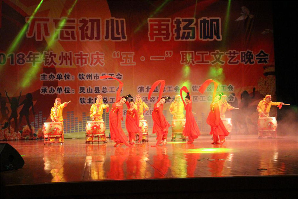 4月26日,市總工會在市文化藝術(shù)中心舉行“不忘初心,再揚帆”2018年欽州市慶“五一”職工文藝晚會,我集團公司選送節(jié)目《鼓動開篇》,雄壯的鼓聲和優(yōu)美的舞姿,贏得現(xiàn)場觀眾陣陣掌聲。