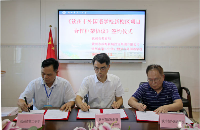 近年來(lái),欽州市委、市政府高度重視教育事業(yè),始終堅(jiān)持教育優(yōu)先發(fā)展。為打造北部灣教育強(qiáng)市,推動(dòng)我市教育事業(yè)發(fā)展,同時(shí)拉動(dòng)濱海新城開(kāi)發(fā)建設(shè),促進(jìn)國(guó)有企業(yè)轉(zhuǎn)型升級(jí)。經(jīng)我集團(tuán)公司與市教育局、市第二中學(xué)、市外國(guó)語(yǔ)學(xué)校對(duì)接協(xié)商,就欽州市外國(guó)語(yǔ)學(xué)校新校區(qū)項(xiàng)目合作事宜達(dá)成了初步意向。希望利用校企合作方式,各方找準(zhǔn)合作載體、優(yōu)化合作方式,利用各自?xún)?yōu)勢(shì)和專(zhuān)長(zhǎng)實(shí)現(xiàn)戰(zhàn)略共贏,能有效促進(jìn)區(qū)域經(jīng)濟(jì)社會(huì)發(fā)展和我市教育事業(yè)的繁榮發(fā)展,實(shí)現(xiàn)社會(huì)效益與經(jīng)濟(jì)效益的雙豐收。