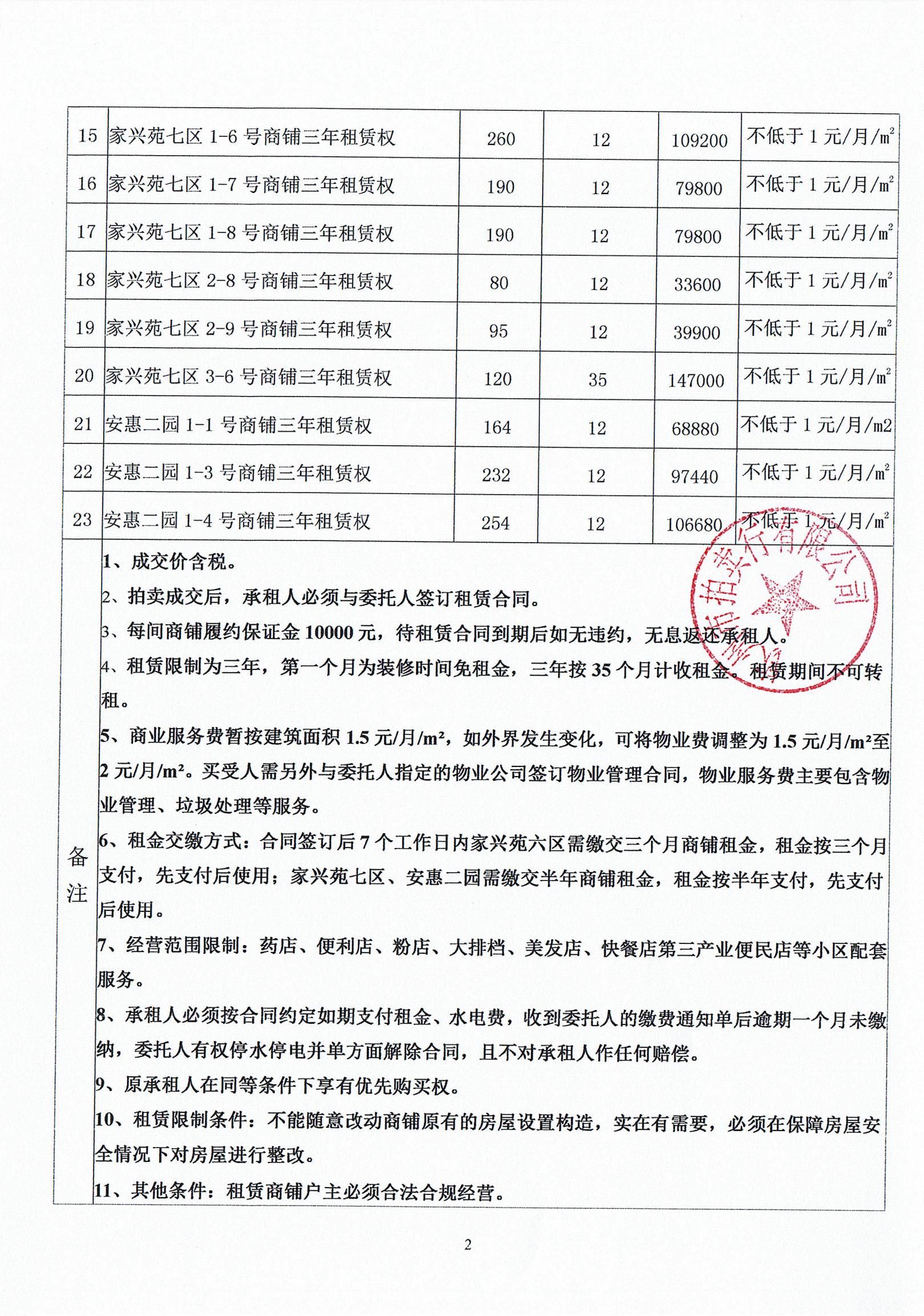 (家興苑六區(qū)、七區(qū)、安惠二園)商鋪租賃權(quán)拍賣公告