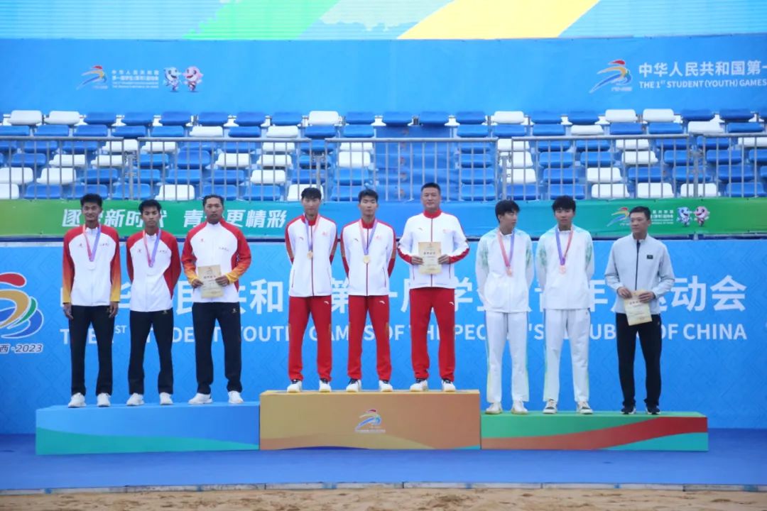 10月29日,第一屆全國學(xué)生(青年)運動會沙灘排球(公開組)決賽在欽州茅尾海沙灘排球訓(xùn)練基地舉行,南京市一隊的周勇吉/徐棕琪憑借出色發(fā)揮,以2:0戰(zhàn)勝黃浦區(qū)一隊的白鵬碩/呂志輝,奪得冠軍。