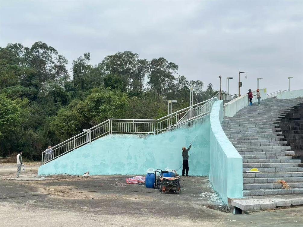 此次場地清理工作涉及范圍廣泛,涵蓋了活動核心區(qū)域及周邊地帶。從布滿雜草的沙灘場地到零散分布的各類垃圾,清理團(tuán)隊分工明確、配合默契,有條不紊地推進(jìn)著每一項清理任務(wù)。目前共累計清理各類垃圾雜物百余噸,其中包括廢棄的蠔殼、塑料垃圾、漂浮物、雜草等。人工配合機(jī)械打草約43000㎡,機(jī)械平整場地約3100㎡,更換塑木生態(tài)板113㎡,墻面噴漆約1000㎡,清洗水池約2900㎡,維修廁所一座,安裝化糞池兩個,拉電纜約1200米,做到了主會場全部通水通電,使海灘恢復(fù)了自然整潔的風(fēng)貌,完善了蠔情廣場的交通指示標(biāo)志,為蠔情節(jié)期間的海灘活動提供了安全舒適的場地。