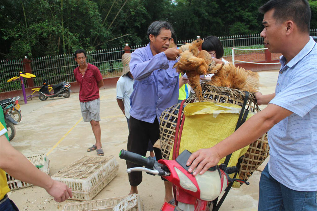 當天上午,運送雞苗的貨車從欽州市出發(fā),經(jīng)過1個小時的行程來到了靈山縣伯勞鎮(zhèn)新禾村公共服務(wù)中心,此時,貧困戶們已經(jīng)滿心歡喜地到來,攜帶裝雞苗的籠子耐心等候著?,F(xiàn)場,集團公司副總經(jīng)理楊新棟在工作人員的協(xié)助下,依次給貧困戶們發(fā)放了雞苗,楊新棟笑著對貧困戶說到:“大家領(lǐng)取到的雞苗平均每只重600克左右,雞苗在運出養(yǎng)殖場之前都已閹割過了,具有生長發(fā)育快、抗病能力強、成活率高、市場效益好等特點,大家回去后要管護好雞苗,讓扶貧雞真正為大家?guī)砻撠毾M?rdquo;,看著一只只活潑亂跳、帶著脫貧希望的雞苗裝進了自家的籠子里,貧困戶們笑得合不攏嘴,心里樂開了花。