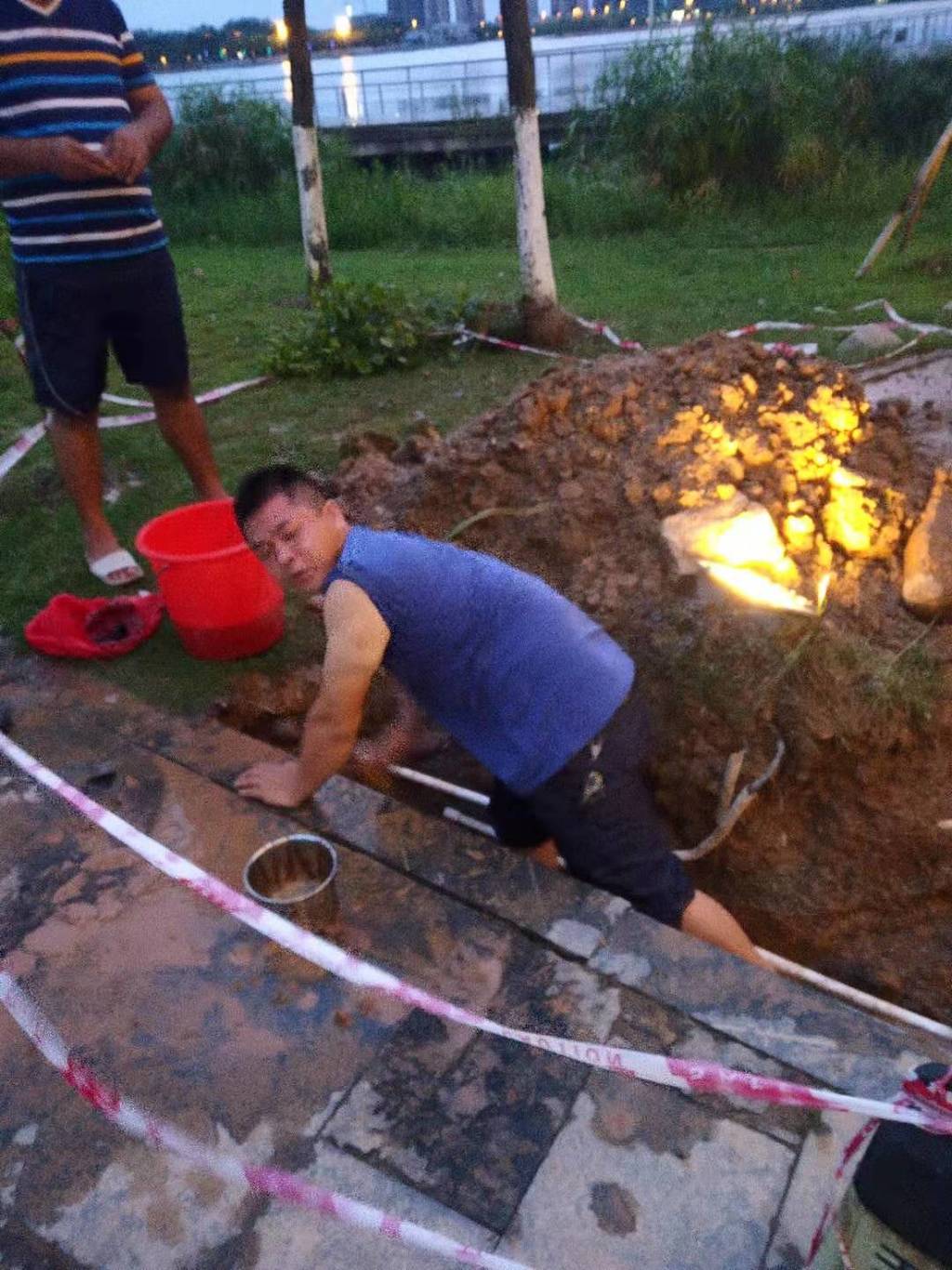 8月29日傍晚,蘭亭街一處深埋的水管爆裂,裂口較大,出水很急。我集團(tuán)公司子公司資產(chǎn)公司接到電話后,立即安排人員到現(xiàn)場(chǎng)深入了解情況,聯(lián)系水務(wù)公司專(zhuān)業(yè)維修隊(duì)進(jìn)行搶修,并及時(shí)通知蘭亭街商家做好儲(chǔ)水應(yīng)急準(zhǔn)備。