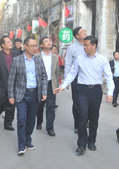 譚丕創(chuàng)市長沿著中山路步行至占鰲巷,實(shí)地調(diào)研歷史文化街區(qū)保護(hù)和老城區(qū)改造提升工作,聽取了集團(tuán)公司董事長趙文博對中山路、占鰲巷、蘇廷有故居的提升改造匯報(bào)工作。