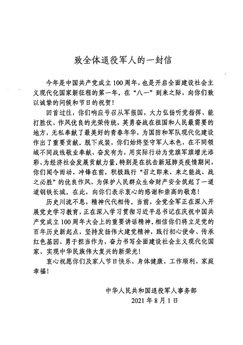 致全體退役軍人的一封信