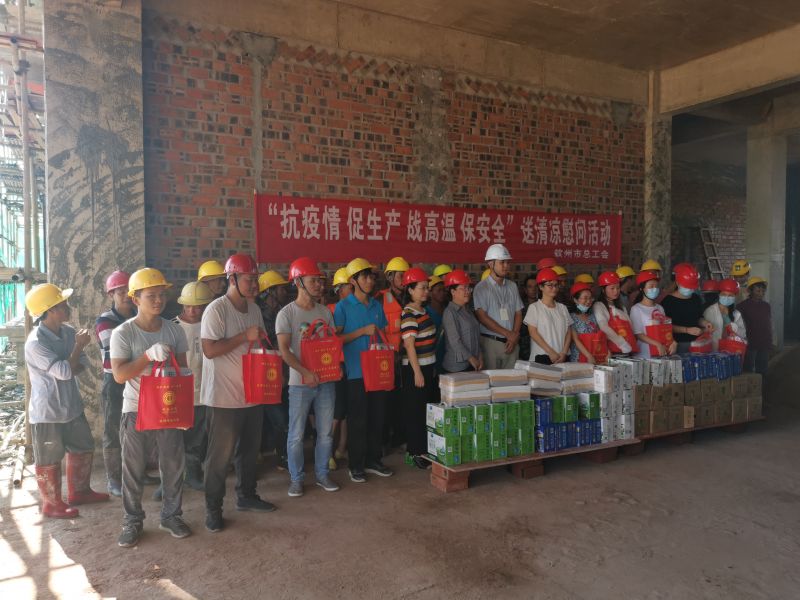 7月13日,欽州市總工會調(diào)研員黃春雯等一行到我集團公司負(fù)責(zé)建設(shè)的欽州是茅尾海監(jiān)控監(jiān)測管理基地項目現(xiàn)場,開展“抗疫情 促生產(chǎn) 戰(zhàn)高溫”送清涼慰問活動。在炎炎夏日,為現(xiàn)場辛勤勞作的農(nóng)民工獻上一份清涼。致謝每一位在一線工作的人員,感謝他們?yōu)槲覀兂鞘邪l(fā)展貢獻一份力量。