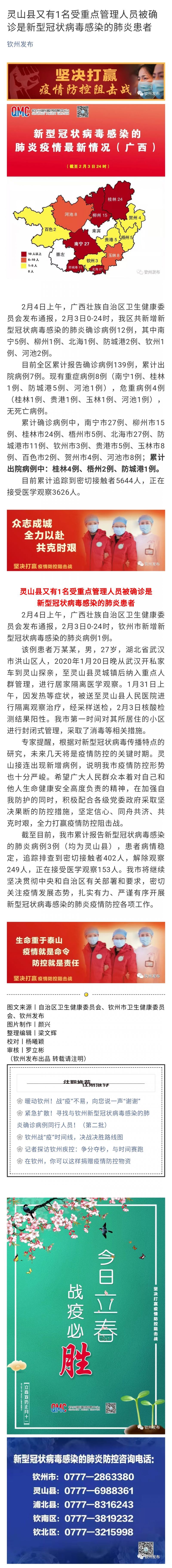 靈山縣又有1名受重點(diǎn)管理人員被確診是新型冠狀病毒感染的肺炎患者