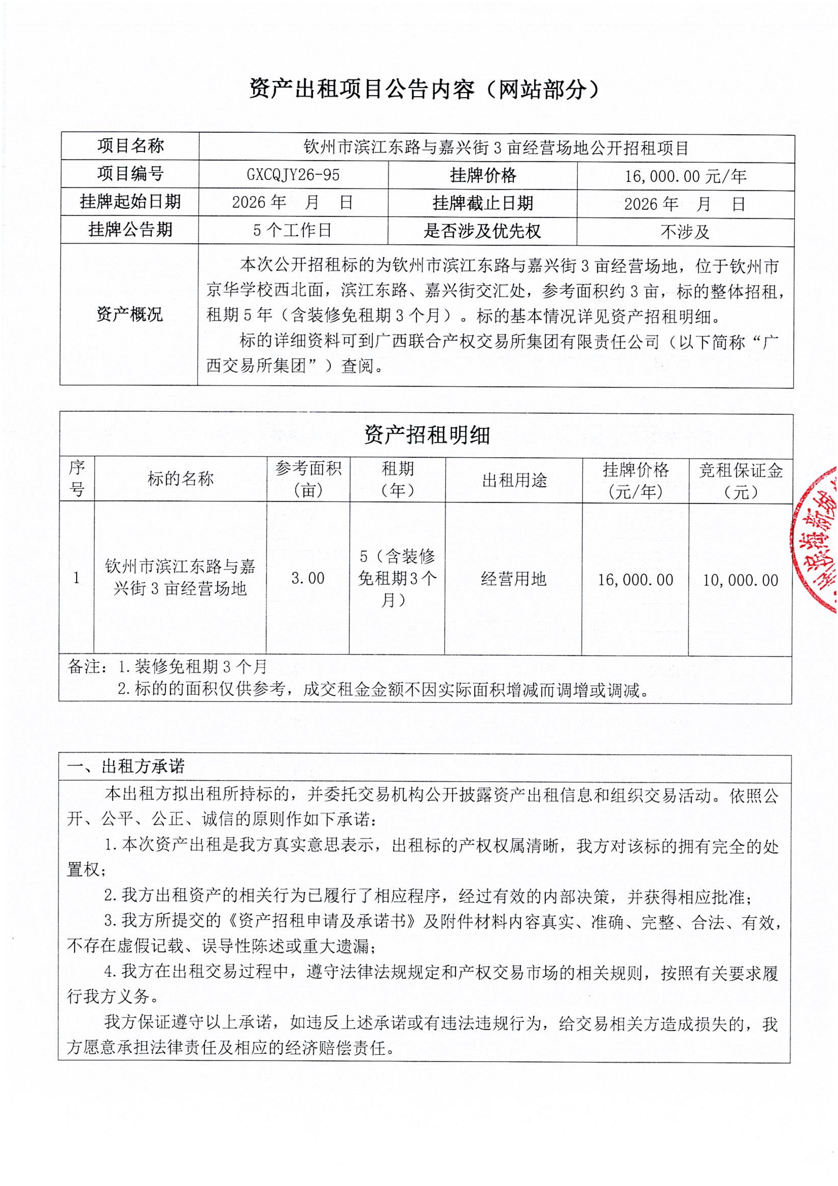 欽州市濱江東路與嘉興街3畝經(jīng)營場地公開招租項(xiàng)目