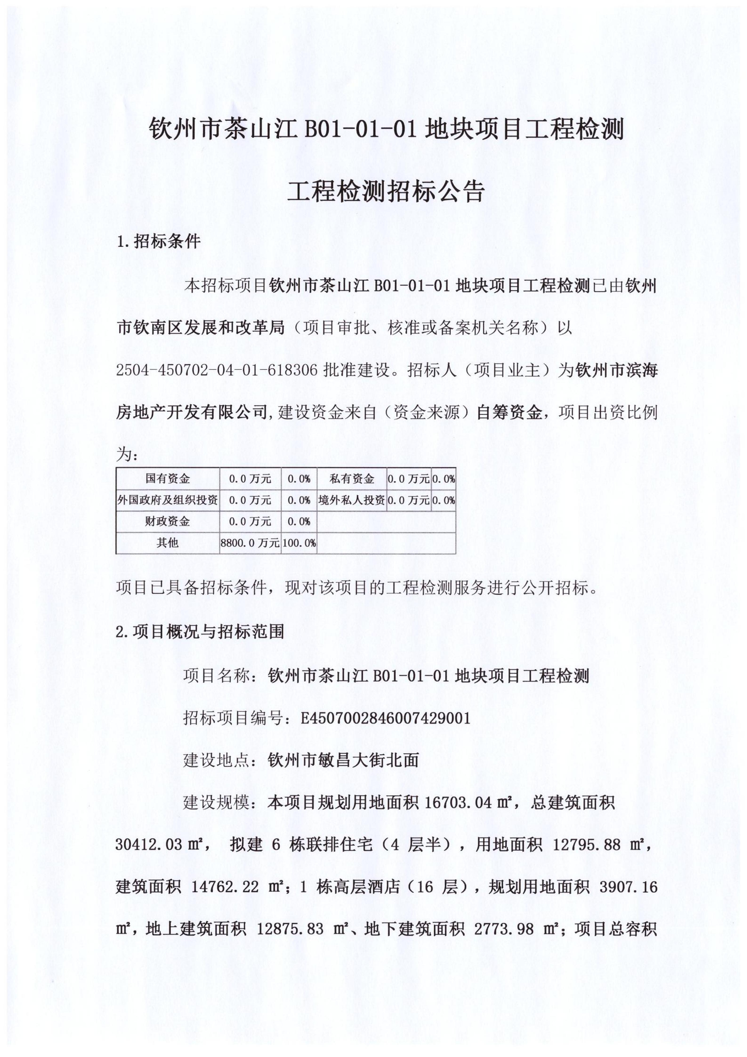 欽州市茶山江B01-01-01地塊項(xiàng)目工程檢測工程檢測招標(biāo)公告