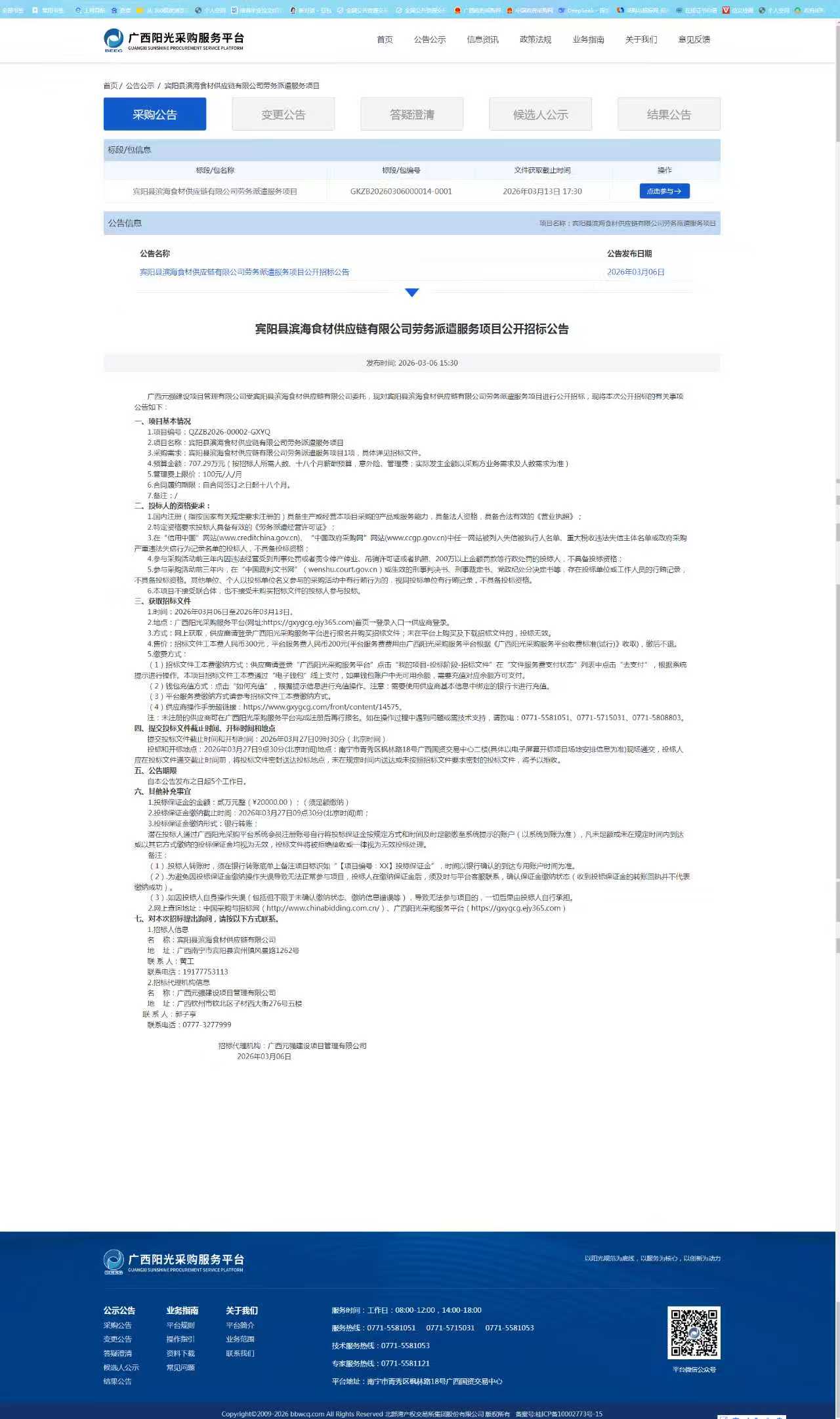 廣西元強(qiáng)建設(shè)項(xiàng)目管理有限公司關(guān)于賓陽縣濱海食材供應(yīng)鏈有限公司勞務(wù)派遣服務(wù)項(xiàng)目的更正公告(二)