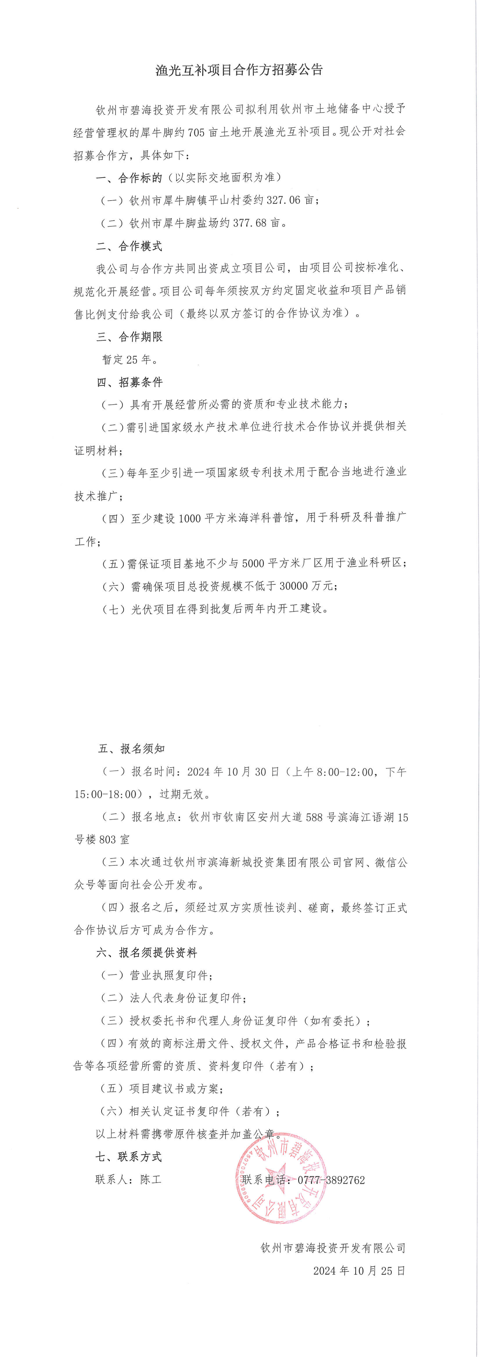 漁光互補(bǔ)項(xiàng)目合作方招募公告