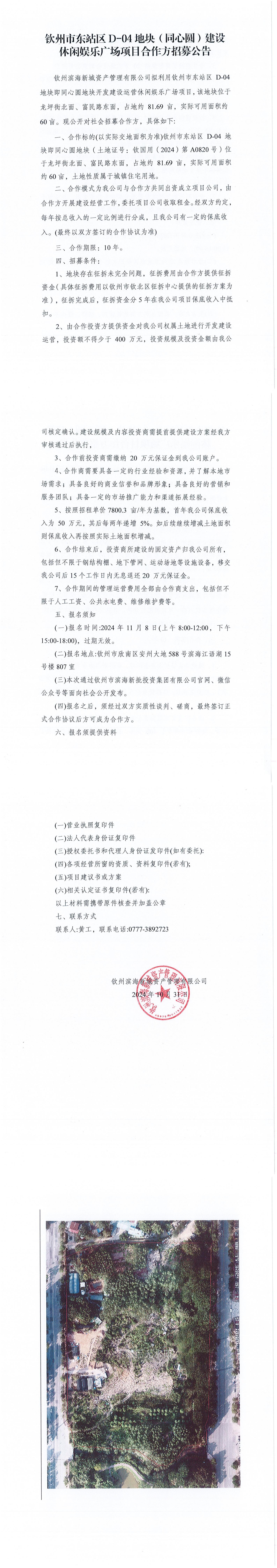 欽州市東站區(qū)D-04地塊(同心圓)建設(shè)休閑娛樂廣場項(xiàng)目合作方招募公告
