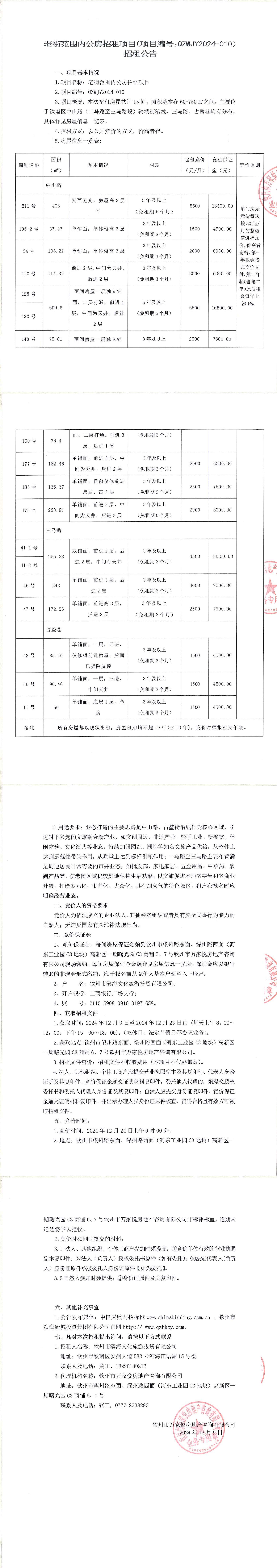 老街范圍內(nèi)公房招租項(xiàng)目(項(xiàng)目編號(hào):QZWJY2024-010)招租公告