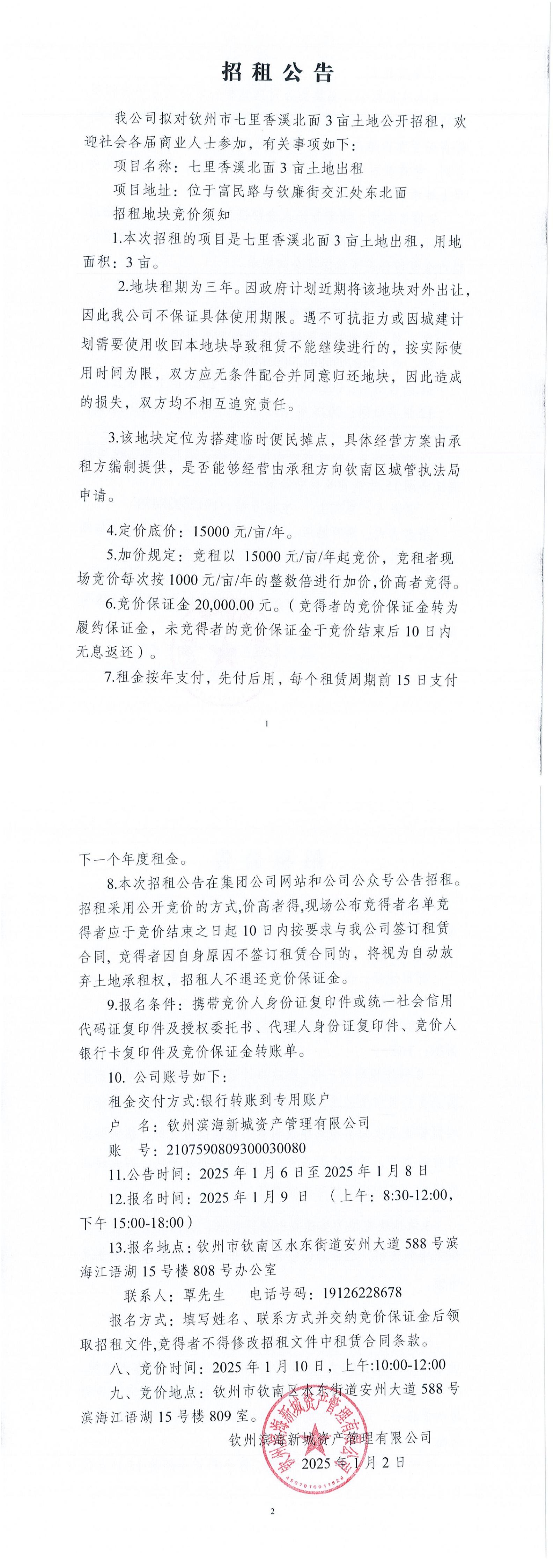 欽州市廉租房家興苑七區(qū)、安惠二園商鋪招租公告