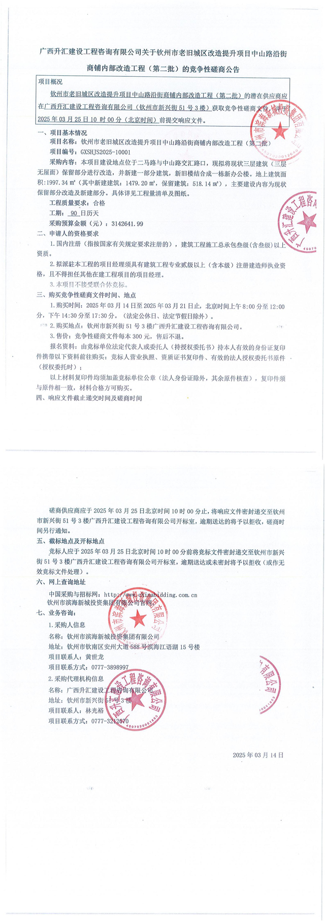 競爭性磋商公告-欽州市老舊城區(qū)改造提升項(xiàng)目中山路沿街商鋪內(nèi)部改造工程(第二批)