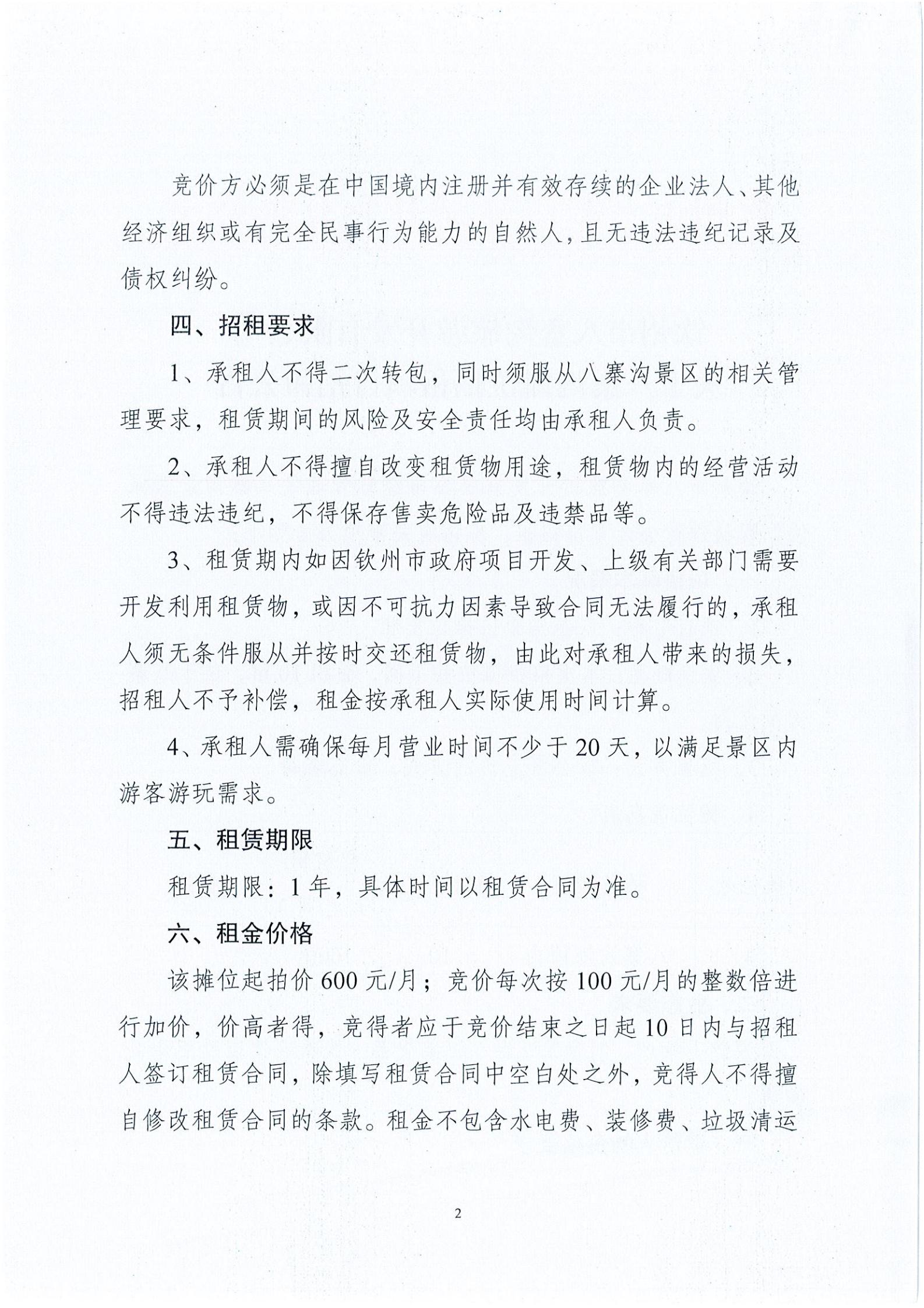 關(guān)于八寨溝攤位招租項(xiàng)目招租公告